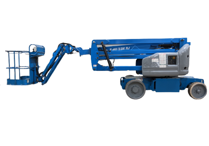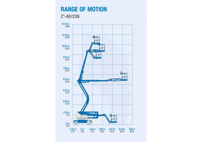 Коленчатый подъемник Genie Z-40/23N. Эти узкие подъемники легко проезжают через стандартные двойные дверные проемы, позволяют добираться до объектов на высоте, приближаясь вплотную к сооружениям и зданиям в обход преград из проходов, или других площадей с ограниченными возможностями.
