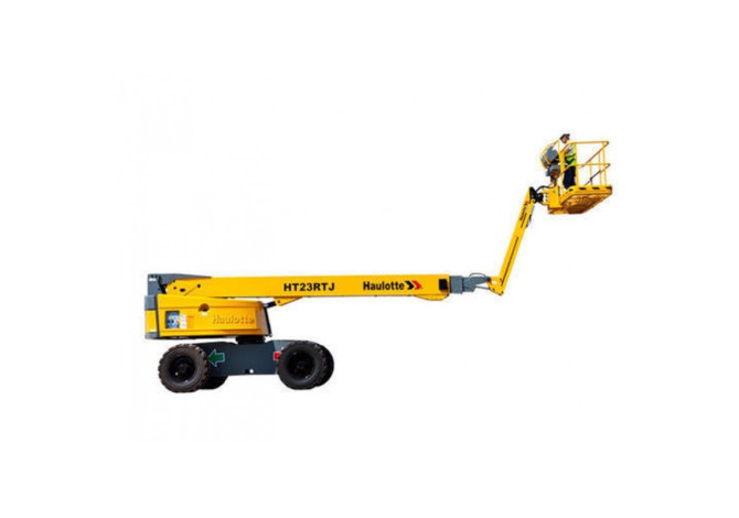 Этот телескопический подъемник продемонстрирует высокую эффективность в работе. Большая рабочая высота и возможность непрерывного вращения опорной платформы на 360° позволяют, не сходя с места, заниматься несколькими целями. При этом модель Haulotte HT23RTJ O самоходная: дизельный двигатель Kubota позволяет подъемнику оперативно ездить по территории со скоростью до 6,5 км/ч.