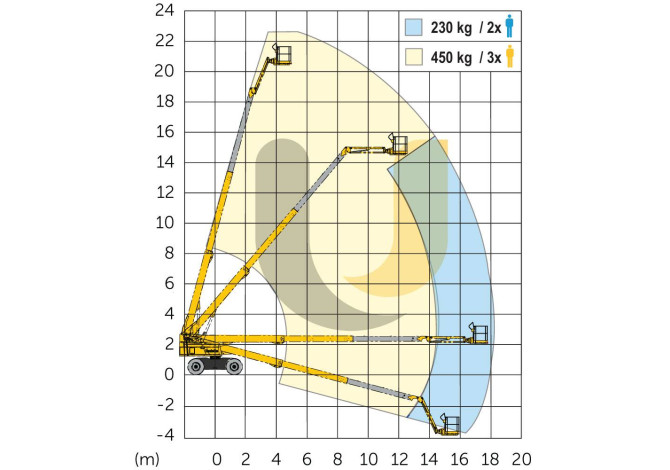 - Максимальная рабочая высота: 22,5 м