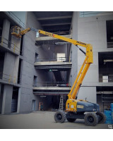 Ёмкость топливного бака составляет 150 литров. Этого количества хватает на очень долгую работу без необходимости дозаправки. Максимальная скорость движения составляет 4,5 километра в час. Поскольку данный аппарат является коленчатым, то он с лёгкостью может сгибаться сразу в нескольких местах подъёмного механизма. Если есть необходимость осуществления ремонтных работ там, куда доступ перекрывают те или иные препятствия (балки, решётки и так далее), то коленчатые модели аппаратов станут идеальными помощниками в этом деле.