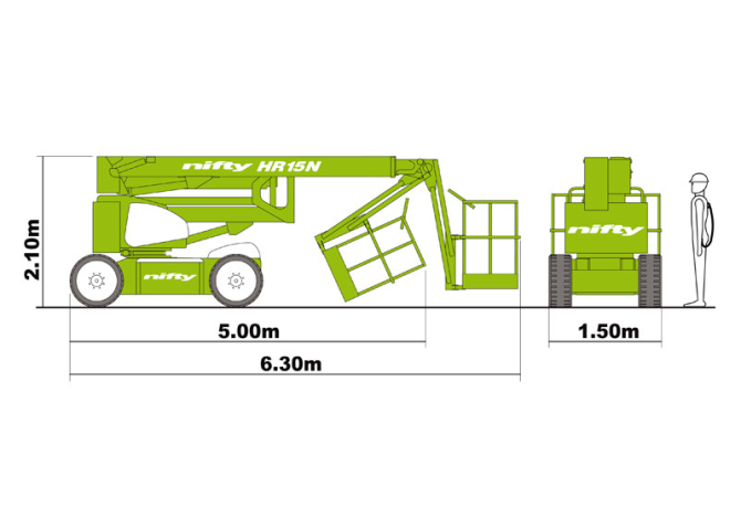 4 500₽Коленчатый подъемник NIFTY HR 15 N — инновационное подъемное устройство, разработанное для работы в условиях ограниченного пространства. Он обеспечивает максимальную рабочую высоту до 15,5 метров и горизонтальный вылет до 9,6 метров, что делает его идеальным для выполнения задач, связанных с техническим обслуживанием и ремонтом на высоте. Благодаря своей шарнирно-сочлененной конструкции, подъемник обеспечивает оператору легкий доступ к труднодоступным местам, а компактный дизайн и малая ширина позволяют использовать его в узких проходах и ограниченных пространствах.