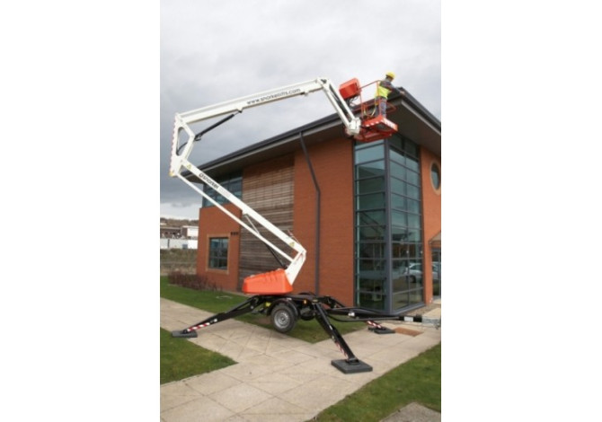 Складные стабилизаторы, параметры рабочей высоты и вылет по горизонтали 6,9 метра позволяют легко проводить отделочные работы, сборку, а также мойку окон и установку рекламных вывесок. При достаточно небольшом весе шарнирно-сочлененного подъемника грузоподъемность составляет ок. 219 кг. Подать заявку на аренду спецтехники можно прямо на сайте.
