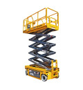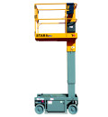Оснащен электрогидравлической системой управления, обеспечивающей плавный подъем и спуск, а также автоматическими тормозами и страховочными клапанами для повышенной безопасности. Модель оборудована несущей платформой размером 1,8×0,8 м с антискользящим покрытием и откидными ограждениями, что обеспечивает удобство и защиту оператора.